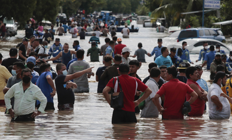▲ Las lluvias torrenciales ocasionadas por la ahora depresión tropical provocaron en Guatemala la mayoría de víctimas, con saldo de 50 personas fallecidas en tres derrumbes de cerros. Las autoridades reportaron que 2 mil 200 habitantes fueron desalojados y hay unos 55 mil afectados. En Honduras (imagen) se informó de deslaves carreteros, puentes destruidos y desbordamiento de ríos. Unas 50 comunidades estaban incomunicadas y más de 3 mil colonos fueron llevados a albergues por las inundaciones. Foto Ap. Agencias