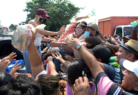 ▲ Una agrupación civil repartió ayer productos a damnifi cados de la colonia Gaviotas, en Villahermosa. El Instituto de Protección Civil del Estado de Tabasco informó que la mayoría de los cauces de ríos descendieron en sus niveles, entre ellos el Grijalva, el cual afectó a la capital. Sin embargo, el organismo alertó que el Usumacinta está a su máximo nivel. Foto Cuartoscuro