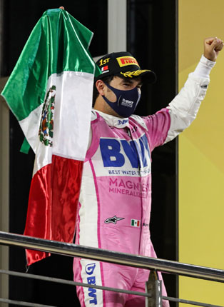 ▲ Tras una década de competencias, 193 carreras y 10 podios, Sergio Pérez conquistó el Gran Premio de Sakhir, en Bahréin, tras sobreponerse a un choque y quedar relegado.