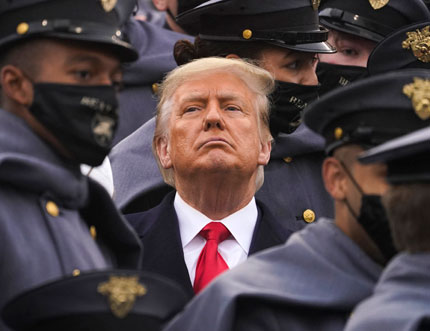 triunfo. en la imagen, el mandatario observa el partido de futbol entre el ejército y la Marina en el estadio Michie de la Academia Militar, en West Point, Nueva York. Foto Ap / Afp y Reuters