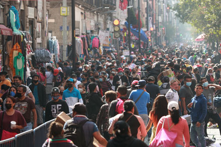 a pasear, lo que provocó tumultos en algunas vialidades del centro Histórico, como en correo Mayor (imagen) debido al desbordamiento del comercio informal. Los más de 60 filtros instalados para ordenar el acceso y las alertas de que estaban en zona de alto riesgo fueron insuficientes. Foto María L. Severiano / Á. Bolaños