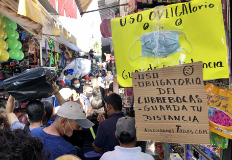 ▲ La jefa de Gobierno de la Ciudad de México informó que hasta ayer se tenían registrados 4 mil 498 pacientes en nosocomios Covid. Advirtió que sólo con la participación de ciudadanos se logrará detener la cadena de contagios. En el Centro de la ciudad siguen sin freno las aglomeraciones en algunas calles, como en El Carmen, Correo Mayor o el callejón El Girón. Foto Luis Castillo. A. Cruz y B. Ramírez