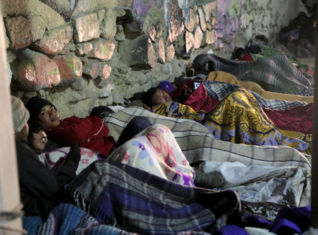 ▲ Luego de que hace una semana fue cerrada la Casa del Migrante de Saltillo por un caso de Covid-19, decenas de centroamericanos que estaban refugiados en el albergue instalaron un campamento fuera del inmueble, donde pasaron la Nochebuena expuestos al frío que se sintió en la capital de Coahuila. La directiva del recinto pidió a las autoridades municipales y estatales atender a este sector, mientras el centro continúa trabajando bajo riesgo de contagios. Foto Martín Balandrán / Leopoldo Ramos, corresponsal