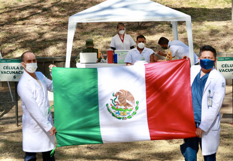 ▲ Médicos y enfermeras que participan en la Operación Chapultepec recibieron 3 mil 900 vacunas contra el Covid-19, en la segunda jornada de la campaña de inoculación. Se trata de personal médico de 27 entidades que vinieron voluntariamente para ayudar a sus colegas, ante el regreso del semáforo rojo en la capital del país. En la imagen, la acción en el Heroico Colegio Militar. EDUARDO MURILLO. Foto Luis Castillo
