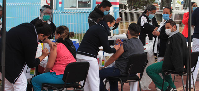 ▲ Médicos y personal de enfermería que combaten el Covid-19 en hospitales públicos recibieron ayer la primera dosis de la vacuna bajo el resguardo de elementos de Ejército, Marina y Guardia Nacional. El titular de la Sedena, Luis Cresencio Sandoval, informó que 8 mil 600 efectivos trasladaron el biológico a 828 hospitales del país. El subsecretario de Salud, Hugo López-Gatell, anunció que hoy empieza la aplicación de la segunda dosis al personal que recibió la primera el 24 de diciembre. La imagen, en Guadalajara, Jalisco. Foto Arturo Campos Cedillo