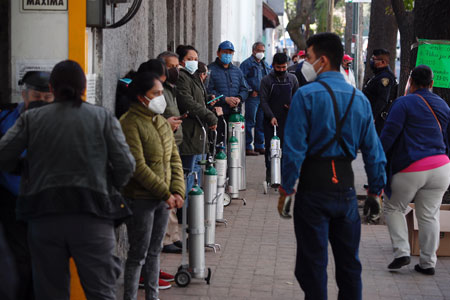 ▲ Ricardo Sheffield, procurador del Consumidor, en coordinación con la Policía Cibernética, informó que se desactivaron 100 páginas en Internet y 700 perfiles de Facebook en los cuales se especulaba y defraudaba con la venta de los equipos médicos, que escasean por la pandemia. En la imagen, centro de recarga en la colonia Escandón, en la Ciudad de México. Foto Cristina Rodríguez. / Rocío González