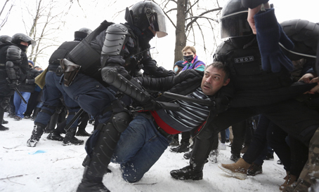 ▲ Decenas de miles de personas salieron a las calles de 85 ciudades de Rusia a pesar del enorme despliegue policial; sólo en Moscú una ONG reportó la detención de mil 653 personas. Para el Kremlin las manifestaciones que piden la libertad del líder opositor son impulsadas desde el exterior, sobre todo de EU. La imagen es en San Petersburgo. Foto Ap. Juan Pablo Duch, Corresponsal