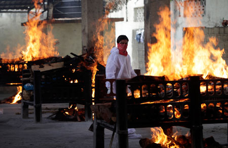 ▲ El país asiático registró ayer un nuevo hito mundial de 332 mil casos y 2 mil 263 fallecimientos en un día, mientras lucha con un sistema de salud desbordado, con varios accidentes que provocan incendios en hospitales donde atienden Covid, como en Bombay (imagen), donde murieron 13 personas a causa del fuego, lo que se suma a la falta de oxígeno, camas y antivirales.