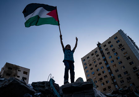 ▲ Nuevos enfrentamientos entre palestinos y policías israelíes estallaron ayer en la Explanada de las Mezquitas en Jerusalén, con saldo de 15 heridos, horas después de entrar en vigor el cese de hostilidades. Los recientes 11 días de bombardeos dejaron 250 palestinos muertos, entre ellos 66 menores y 39 mujeres, y 12 israelíes, así como miles de desplazados y heridos. En la imagen, un niño ondea la bandera palestina sobre los escombros de lo que fue la sede de la agencia Ap y Al Jazeera. Foto Ap / Agencias