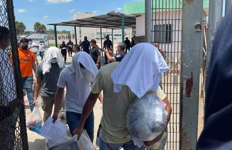 ▲ Al mediodía de ayer, los 17 alumnos de la Escuela Normal Rural de Mactumactzá y dos desplazados del municipio de Chenalhó salieron del reclusorio ubicado en Cintalapa, tras determinar un juez la libertad condicionada. El 18 de mayo fueron detenidas 95 personas por actos vandálicos en la caseta de cobro de la autopista Chiapa de Corzo-San Cristóbal de las Casas. Foto La Jornada
