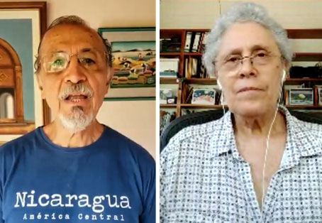 ▲ El general retirado Hugo Torres, Comandante 1, y Dora María Téllez, Comandante 2, históricos ex guerrilleros sandinistas detenidos por el régimen de Daniel Ortega. La segunda concedió una entrevista a Jaime Hernández poco antes de su arresto. Fotos tomadas de videos