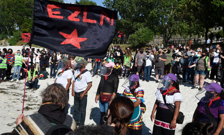 ¡Zapata vive, la lucha sigue!La llegada de la nave La Montaña a las costas gallegas ocurrió el 20 de junio, pero una serie de trámites aplazó que los viajeros tocaran tierra. El objetivo de la gira es visitar numerosos países de Europa. Foto Afp. Armando G. Tejeda, Corresponsal