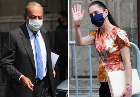 ▲ El presidente Andrés Manuel López Obrador se reunió ayer con el empresario y con la jefa de Gobierno capitalino a casi una semana de la divulgación del estudio de la empresa noruega DNV, que apunta a causas estructurales en el derrumbe de la línea 12 del Metro, ocurrido 3 de mayo, el cual provocó la muerte a 26 personas; Grupo Carso fue responsable de la construcción de la trabe colapsada. No se emitió información de lo abordado en la cita, pero Sheinbaum volvió al recinto en la tarde. Fotos Cuartoscuro. F. Martínez y R. Garduño