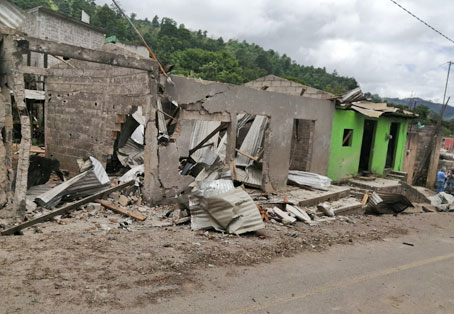 ▲ A seis días de la irrupción del grupo armado Autodefensas del Pueblo El Machete en el municipio chiapaneco, los pobladores se mantienen encerrados en sus viviendas. Trascendió que el 7 de julio estallaron dos artefactos explosivos que dañaron tres casas (imagen) y destruyeron un vehículo, aparentemente sin ocasionar víctimas. La fiscalía estatal cateó el rancho La Laguna y tres inmuebles más tras la emboscada y lesiones a nueve uniformados, entre militares y agentes. Foto Elio Henríquez. Elio Henríquez, Corresponsal