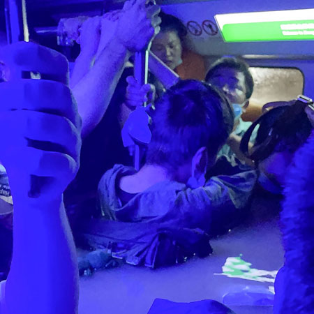 ▲ Un usuario de redes sociales divulgó esta imagen de la inundación del Metro en la ciudad de Zhengzhou, la cual muestra cómo quedaron atrapados los pasajeros en un vagón tras el diluvio que azotó la región de Henan, en el centro de China. Las fuerzas militares dirigen las tareas de rescate en la urbe de más de 10 millones de habitantes. Foto Afp