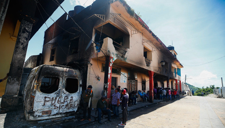 ▲ La fiscalía de Chiapas informó que las 20 casas quemadas por habitantes de las 86 comunidades indígenas y los 18 barrios de Pantelhó coinciden con las que habían cateado las autoridades. En tanto, los 20 ciudadanos nombrados por los ocupantes de la alcaldía llamaron a las personas que abandonaron la cabecera municipal por miedo, a que regresen a sus casas: