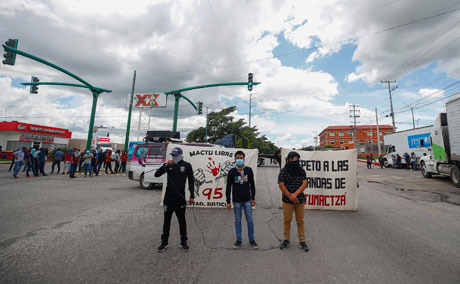 ▲ Estudiantes de la normal rural bloquearon el libramiento norte de Tuxtla Gutiérrez, capital de Chiapas, en protesta porque las autoridades estatales suspendieron un encuentro programado para este viernes, en el cual presentarían un pliego de demandas, que incluía el cese de los procesos judiciales contra 92 alumnos sujetos a libertad condicional. En la Ciudad de México, normalistas acusaron al gobierno de Rutilio Escandón
