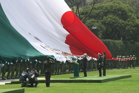 Sin lógica y de mala fe, acusaciones de que estamos militarizando el país, dijo el presidente Andrés Manuel López Obrador durante el acto donde el general Eufemio Alberto Ibarra asumió la Comandancia del Ejército, que se enfocará en el desarrollo de la fuerza armada, dando prioridad al adiestramiento realista y práctico. El mandatario agradeció apoyo de la Marina y el Ejército en las obras de su gobierno; ratificó que si el Legislativo lo aprueba, la Guardia Nacional se unirá a la Sedena. Foto Yazmín Ortega Cortés / Gustavo Castillo
