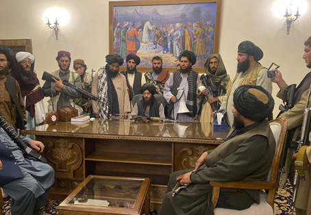 ▲ Combatientes del Talibán asumieron el control del palacio presidencial (imagen) y de otras oficinas de gobierno en Kabul tras su ingreso sin resistencia a la capital de Afganistán. Las fuerzas islamitas aseguraron que no cobrarán venganza, pero ha habido, según reportes, ejecuciones en algunas zonas bajo su mando, como Spin Boldak y Ghazni. Foto Ap