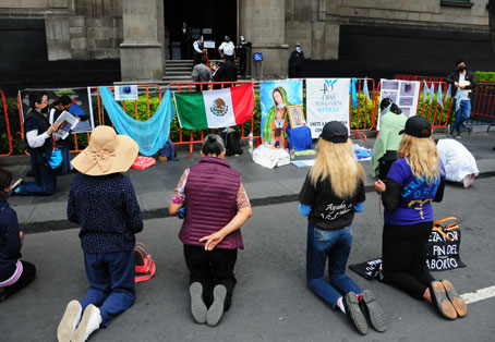 ▲ Integrantes de la organización Provida y de grupos religiosos se manifestaron frente a la Suprema Corte de Justicia de la Nación, en donde se discutía declarar inválido el castigo de cárcel contra mujeres que abortan. La dirigencia del Partido Acción Nacional, en un comunicado, rechazó una decisión en ese sentido. Señaló que está