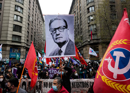 ▲ Con la próxima elección presidencial en noviembre y la redacción de la nueva Carta Magna como telones de fondo, se conmemoró el 48 aniversario del golpe militar en Chile que puso fin al gobierno de Salvador Allende y dio paso a la dictadura de Augusto Pinochet. Ayer miles de personas marcharon por las calles de Santiago hasta las cercanías del palacio de La Moneda. También hubo incidentes violentos que dejaron al menos seis detenidos. Foto Ap / Afp, Ap y Prensa Latina