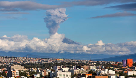 ▲ En gran parte del valle de México fueron visibles las explosiones con cenizas y gases. Pobladores de localidades cercanas al volcán reportaron estruendos. Protección Civil del estado de México dijo que la fumarola mayor ocurrió a las 18:11 horas y alcanzó mil 500 metros de altura. En la mañana ocurrieron las otras dos, con mil 200 y mil 100 metros. Foto José Carlo González. René Ramón