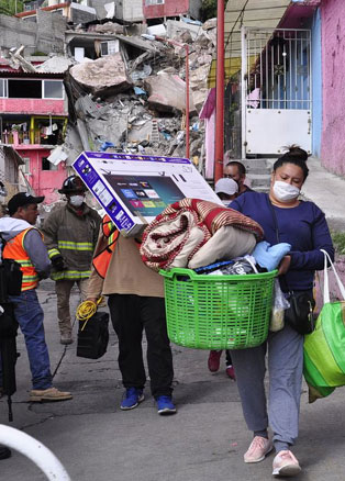▲ La fiscalía mexiquense informó del rescate del cadáver de la niña Mia Mayrin Mendoza en una de las viviendas destruidas por el desgajamiento del cerro el viernes; aún falta localizar a su hermano Jorge y a su madre, Paola Campos. La cifra de víctimas mortales asciende a dos. El riesgo persiste en la zona para 141 inmuebles, por lo que siguió el desalojo. Foto La Jornada. Silvia Chávez