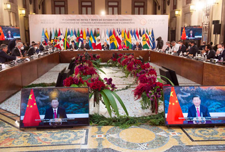 ▲ La Cepal presentó ayer a los gobiernos de la región que participaron en el encuentro de la Celac un plan de autosuficiencia sanitaria que busca acelerar en el corto plazo el acceso a las vacunas contra el Covid-19, ante el alarmante dato de que 80 por ciento de los habitantes de América Latina y el Caribe no alcanzará una dosis este año, pues mientras Chile ya inmunizó a 87 por ciento de su población mayor de 18 años, Haití apenas a 0.2. En la imagen, aspecto de la conferencia realizada ayer en Palacio Nacional. Foto Presidencia
