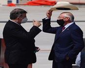 El canciller Marcelo Ebrard y Ken Salazar, embajador de EU, platicaron en la inauguración de la Feria Aeroespacial 2021. Foto Cristina Rodríguez