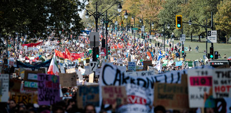 ▲ Defensores del ambiente, muchos de ellos estudiantes que no acudieron a clases, se manifestaron en varias ciudades del mundo como parte del movimiento Viernes por el Futuro, convocados por la sueca Greta Thunberg, quien encabezó la protesta en la ciudad alemana de Berlín, para advertir a los dirigentes que el planeta afrontará peligrosos incrementos de temperatura que pondrán en riesgo a la especie humana, a menos de que se reduzca drásticamente la emisión de gases de efecto invernadero. La imagen, en Montreal, Canadá. Foto Afp. / Ap, Afp y The Independent