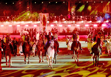 ▲ Capítulos significativos de la consumación de la Independencia, que derivaron en la entrada del Ejército de la Tres Garantías a la capital el 27 de septiembre de 1821, fueron escenifi cados por mil 400 mujeres y hombres de las fuerzas armadas en la explanada del Zócalo. El festejo culminó con fuegos artifi ciales, con la música de fondo del Huapango, de Pablo Moncayo, y Mi ciudad, de Guadalupe Trigo. Foto Luis Castillo