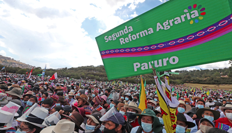 ▲ El presidente anunció el proyecto ante centenares de campesinos reunidos en la gigantesca explanada de la fortaleza inca de Sacsayhuamán, a las afueras de Cusco. Quiero dejar claro que esta reforma no busca expropiar tierras ni afecta derechos de propiedad, destacó. Uno de los ejes es dar a los agricultores acceso justo a los mercados. Foto Presidencia de Perú. Agencias