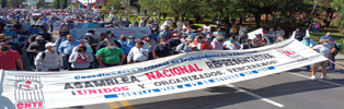 ▲ Dirigentes de la coordinadora acordaron lucha conjunta contra acciones que dañen al gremio. En Morelia hubo marcha de apoyo a maestros de Michoacán. Foto Ernesto Martínez. E. Martínez