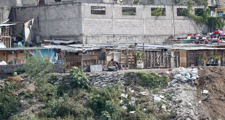 ▲ En relleno sanitario a cielo abierto, sobre la ladera de la barranca Cerro Azul, un grupo de familias ocuparon el Área Natural Protegida de la sierra de Santa Catarina. Con costales de cascajo levantaron un muro de contención para edificar viviendas endebles. La asociación de colonos Lomas de la Estancia acusó a la lideresa María del Carmen Hernández de vender los lotes al mejor postor desde hace más de cinco años. Señaló que ha hecho las denuncias respectivas, pero no hay resultados concretos. Foto Luis Castillo. / Roció González