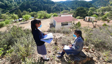 ▲ El Consejo Nacional de Fomento Educativo aplica el Aprendizaje Basado en la Colaboración y el Diálogo, o modelo ABCD, en más de 295 mil alumnos de prescolar, primaria y secundaria del país, el cual se basa en que un alumno que aprendió una lección puede enseñar a otro, mediante el apoyo de tutores comunitarios. En las montañas de San Luis del Pino, Puebla (imagen), en una pequeña escuela, 24 adolescentes, la mayoría niñas, cursan la secundaria multigrado con este método novedoso. Foto Luis Castillo. Laura Poy