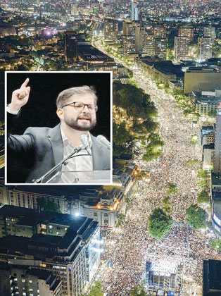 ▲ Cientos de miles de personas se congregaron en el centro de la capital chilena para colmar la Alameda, la principal arteria de la urbe, en la cual se desplegó un escenario para el discurso de victoria de Gabriel Boric, del izquierdista pacto Apruebo Dignidad. El presidente electo admitió la responsabilidad que asume, la esperanza que encarna y las limitaciones que enfrentará. Fotos Afp