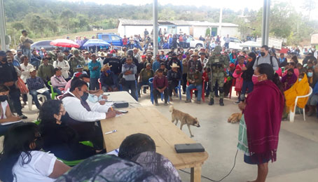 ▲ Representantes de comunidades indígenas se reunieron el pasado fin de semana en Alcozacán, municipio de Chilapa de Álvarez, para demandar el ‘‘desmantelamiento de grupos narcoparamilitares y a quienes los protegen, para que la violencia se vaya de nuestros pueblos’’. En el encuentro participaron funcionarios de la CNDH y de Gobernación, así como autoridades estatales y castrenses. Señalaron al grupo criminal de Los Ardillos como el principal generador de la inseguridad. Foto La Jornada. Sergio Ocampo, Corresponsal