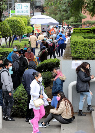 ▲ En el Hospital del IMSS Carlos MacGregor, en la colonia Del Valle, hubo filas desde las 5 de la mañana para las pruebas de detección del covid-19. En la industria farmacéutica se comentó que hay escasez de reactivos para los ensayos PCR. Ayer, el gobierno capitalino instaló 11 macrokioscos en 10 alcaldías para atender la gran demanda. Foto Roberto García. Ángeles Cruz y Redacción