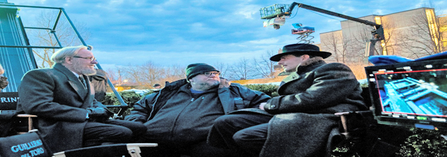 ▲ Después de tantas expectativas, la cinta del director mexicano (centro) empieza su corrida comercial en el país el próximo jueves. En una charla, el cineasta explica la adaptación que hizo de la novela Nightmare Alley, de William Lindsay Gresham, cuyo papel protagónico inicialmente lo tomó Leonardo DiCaprio, quien por un conflicto de fechas no pudo hacerlo. La siguiente persona ideal para representar a Stanton Carlisle fue Bradley Cooper (derecha), quien se dedicó en cuerpo y alma al personaje, señala el tapatío. La imagen, en el set de la producción, con el actor Richard Jenkins. Foto Searchlight Pictures vía Ap. Jorge Caballero