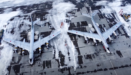 ▲ El Pentágono anunció que puso en alerta a 8 mil 500 militares que podrían desplegarse como parte de las tropas de la OTAN si Rusia invade Ucrania, mientras Joe Biden sostuvo una videoconferencia con mandatarios de Alemania, Francia, Gran Bretaña, Italia y Polonia. En la imagen, tomada de un video proporcionado por el Servicio de Prensa del Ministerio de Defensa ruso, un par de bombarderos estratégicos TU-95 de la Fuerza Aérea de esa nación permanecen en una base en Engels, cerca del río Volga. Foto Ap. Agencias