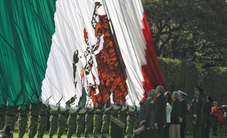 ▲ El presidente de la Suprema Corte de Justicia de la Nación, Arturo Zaldívar, participó como orador principal en el acto conmemorativo del Día de la Bandera, encabezado por el mandatario federal en el Campo Marte, donde la Sedena desplegó 15 batallones.