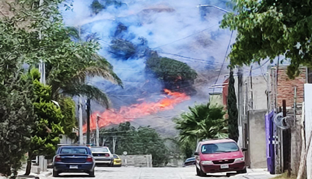 ▲ El fuego comenzó a media tarde en el paraje El Colli, ubicado en el municipio de Zapopan. Las autoridades desplegaron a 83 brigadistas para controlarlo e instalaron un puesto de mando. El espacio natural, principal pulmón de la zona metropolitana de Guadalajara, sufrió apenas el 23 de marzo otro siniestro, el cual arrasó 280 hectáreas. Foto La Jornada. Corresponsales