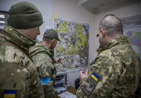 ▲ Integrantes de la guardia territorial de Kiev, muchos de ellos voluntarios e incluso extranjeros, se alistan para una misión en un búnker en la capital ucrania. Los recorridos los preparan con gran minuciosidad, pese al repliegue, en los últimos días, de las tropas rusas hacia el este y regiones del sur de la ex república soviética invadida. Foto Jair Cabrera