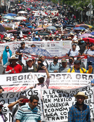 ▲ Miles de docentes se manifestaron en la CDMX (imagen) y en diversos estados por el Día del Maestro. Enfatizaron que el alza salarial anunciada de 7.5% es insuficiente para cubrir el deterioro acumulado de 44% en el poder adquisitivo de trabajadores de la educación. La CNTE demandó restablecer las mesas de diálogo con el presidente Andrés Manuel López Obrador. Foto V. Camacho. L. Poy y C. Arellano