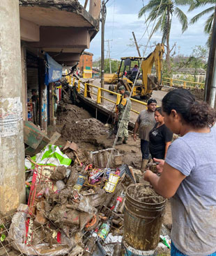 ▲ Viviendas destrozadas, carreteras bloqueadas y comunidades aisladas dejó el huracán Agatha. El gobernador Alejandro Murat precisó ayer que son 11 personas fallecidas y siete desaparecidas. Mediante un puente aéreo del Ejército y la Marina se distribuyen más de 8 mil despensas y se aprobó la solicitud de declaratoria de desastre para 25 municipios. La imagen es de Santiago Xanica, en la Sierra Sur. Foto Oaxaca Vial. / Jorge A. Pérez y Redacción