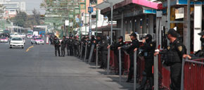 ▲ Tres mil policías resguardaron a trabajadores del gobierno, quienes retiraron mil 465 estructuras metálicas de comerciantes ambulantes en el Eje 1 Norte. Foto A. Domínguez. / J. Quintero