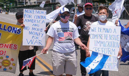 ▲ Los manifestantes se concentraron a unos pasos del Centro de Convenciones, donde se realiza la Cumbre de las Américas. También protestaron por la exclusión que aplicó el gobierno de estados unidos a Cuba, venezuela y nicaragua, al tiempo que ondearon pancartas y colocaron sillas simbólicas con las banderas de las naciones que no asistieron al encuentro hemisférico. Foto Afp