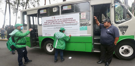 ▲ En el primer día de operativos de revisión para vigilar que no se cobre más de la tarifa autorizada y se cumplan con las mejoras en el servicio, en 76 unidades se colocaron sellos de suspensión de actividades y dos fueron remitidas al corralón. Las sanciones fueron por no contar con licencias tipo C, póliza de seguro, carecer de uniforme o que el conductor lleve un acompañante. En general, las autoridades consideraron que 92 por ciento de choferes cumplieron con los acuerdos; sin embargo, gran número de concesionarios evitaron circular para evitar las multas. Foto Luis Castillo. / R. González, J. Quintero, L. Gómez y B. Ramírez