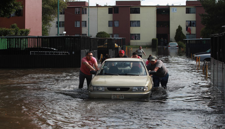 ▲ La ruptura de la tubería principal de agua potable que proviene del tanque del Cerro de la Estrella provocó en la avenida San Lorenzo, colonia El Rodeo, la pérdida de miles de litros del líquido, daños a cuatro inmuebles y 20 vehículos, así como un socavón, en el cual cayó un taxi. El coordinador del Sacmex, Rafael Carmona, estimó que en 48 horas quedaría reparado el tubo de 1.22 metros de diámetro. La fuga generó el rompimiento de la carpeta asfáltica y el cierre de la arteria. Foto Alfredo Domínguez. Laura Gómez