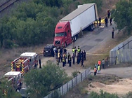 ◀ El vehículo que transportaba a los indocumentados fue encontrado por agentes de inmigración y aduanas en un área remota de la ciudad de San Antonio, Texas, en una carretera cercana a una autopista que conduce a la frontera con México. Foto tomada de Twitter